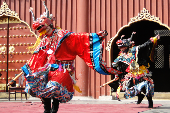 內(nèi)蒙地區(qū)的查瑪樂舞已與藏族地區(qū)的“羌姆”明顯不同。隨著藏傳佛教傳入蒙古地區(qū)后,積極的吸收和融合了蒙古族傳統(tǒng)音樂舞蹈和薩滿教神舞的因素后形成了蒙古化的查瑪樂舞。因此,內(nèi)蒙地區(qū)的查瑪內(nèi)具有復(fù)合型和多元性特點(diǎn)。2008年,查瑪樂舞被列入國家級(jí)非物質(zhì)文化遺產(chǎn)。