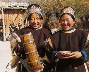 在工布地區(qū),不管是遠(yuǎn)方的來(lái)客,還是常來(lái)常往的朋友,一踏進(jìn)主人的新家,主人首先端出的是香噴噴的酥油茶。如果是尊貴的客人,還要被請(qǐng)到上座。招待來(lái)客時(shí),主人會(huì)敬上酥油茶和青稞酒,尤其是青稞酒,主人要兩手棒著,恭敬地送到客人手上,客人喝一口,主人添一次,連續(xù)三次??腿俗詈笠豢跉獍驯械木坪韧?,這就是通常所說(shuō)的三口一杯。如果客人推辭,主人還要獻(xiàn)上優(yōu)美動(dòng)聽的酒歌,以此來(lái)表達(dá)主人的熱情和對(duì)客人的尊敬,直到客人把杯中的酒喝完為上。手捧酒杯,主人依次要給所有的來(lái)客敬上一遍。杯杯醇酒,盛滿了工布人的情和意。那情景,常令在場(chǎng)的人感動(dòng)不已。