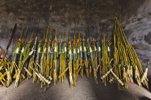 制蘆笙的材料一般都就地取材,楊枝光開(kāi)春前進(jìn)山,選擇皮薄、節(jié)長(zhǎng)的“蘆笙竹”,在每年農(nóng)歷十月以后至次年開(kāi)春前采回,晾干。做笙斗、做共鳴筒都簡(jiǎn)單,只需把竹子按一定的比例鋸成段后,然后把里邊的竹節(jié)打通。