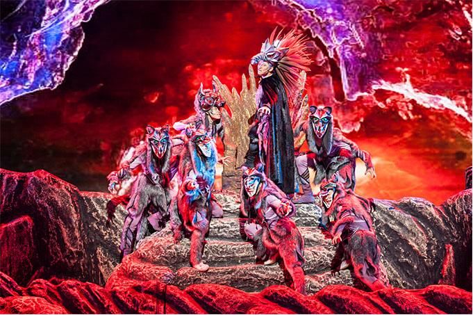 主創(chuàng)團隊選取“賀蘭山巖畫”“巖羊”等寧夏獨有的文化元素符號,以賀蘭山巖畫標(biāo)志性的“太陽神”作為人物原型,以三個部落之間的結(jié)盟和沖突作為戲劇主線,準(zhǔn)確地將巖畫藝術(shù)與雜技藝術(shù)巧妙融合,使其成為既有濃郁地域文化特色,又有巨大時空張力,更有人類共同情懷的雜技劇。