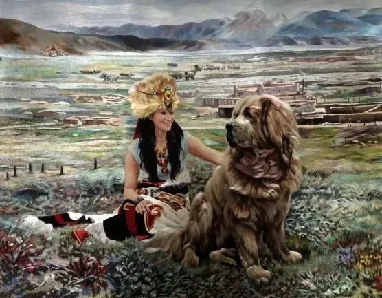 作品采用亂針繡針法和蜀繡傳統(tǒng)施毛針法相結(jié)合的工藝?yán)C制,呈現(xiàn)出藏族少女與藏獒和諧相處的畫面,民族風(fēng)情濃郁,人物塑造逼真。