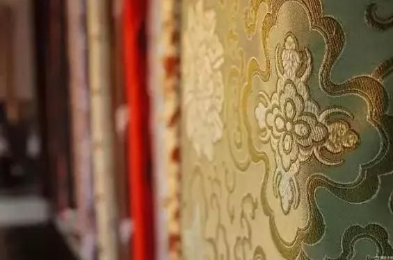 南京云錦大量使用金線,逐花異色,質(zhì)地堅實,花紋渾厚優(yōu)美,色彩濃艷莊重。配色運用 “色暈 ”層層推出主花,且從云錦的不同角度觀察,繡品上花卉的色彩是不同的。