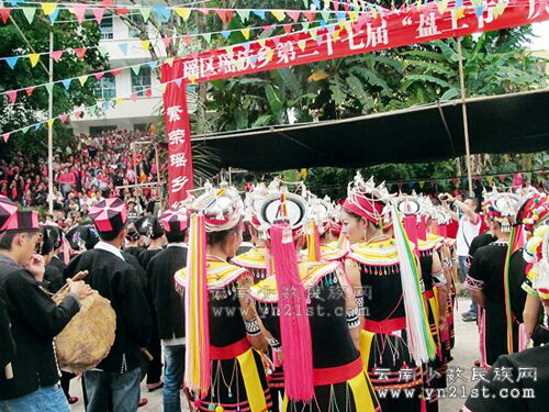 另一傳說:傳說很久以前,創(chuàng)造人類的老天爺叫每個(gè)民族的頭人到他那里領(lǐng)取各民族的文字,并要求頭人們用3個(gè)月零3天的時(shí)間把本民族的人都教會(huì),才能分到谷魂、田地、牛馬等。香堂人的頭人把文字刻在了糯米粑粑上。在回家的路上,頭人因?yàn)轲囸I,把刻有文字的粑粑都吃光了,沒有把文字教給族人。香堂人因此沒有分到谷魂、田地、牛馬等。香堂人的生活陷入了極端貧困中。在他們的一再祈求下,老天爺派一對(duì)兄妹帶著谷魂、田地、牛馬下凡,并為他們各準(zhǔn)備了兩顆雞蛋大的飯作為路上的干糧。路上妹妹丟失了一顆,吃了一顆。哥哥讓妹妹與自己同吃剩下的一顆,妹妹說這樣倆人誰都到不了人間。她讓哥哥帶著東西先到人間,返回天上時(shí)再來接她。妹妹告訴哥哥,如果她死了,每年的二月初七早上到寨子的東面最高的山上最高的樹下叫她的魂,她將給香堂人的谷魂及來年帶來好運(yùn)。哥哥返回天上時(shí),在路上發(fā)現(xiàn)了妹妹的尸體。為了紀(jì)念這位品德高尚的姑娘,彝族把農(nóng)歷二月初八定自己的節(jié)日。