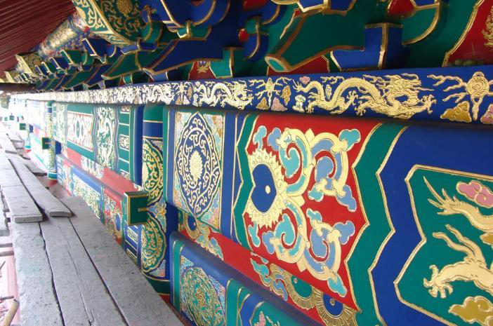 古建彩繪是中國獨(dú)有,歷史悠久,內(nèi)容豐富多彩,而且名目繁多,一般分為三類:旋子彩畫、和璽彩畫和蘇式彩畫。彩畫普遍使用于宮殿、寺廟、官衙、牌樓等建筑,它有著特有的施工過程,一般先批灰打底,其次繪畫放樣,最后設(shè)色涂刷。