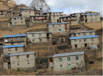 夏爾巴人的房屋建筑形式特殊,一般都是人字形頂,上蓋魚鱗板(即用斧子劈成的薄板),四周用石塊壘成厚墻,在墻上架梁造樓。其建筑大都分為三層,底層結(jié)構(gòu)用石頭砌墻的較多,中層四邊是用木板層層如圍墻式地圍起來,頂層四邊留有適當(dāng)?shù)目障?,以便于通風(fēng),或照射太陽。