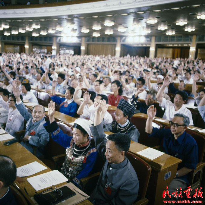 1984年5月31日,中華人民共和國(guó)第六屆全國(guó)人民代表大會(huì)第二次會(huì)議通過了《中華人民共和國(guó)民族區(qū)域自治法》,自1984年10月1日起施行。民族區(qū)域自治制度是我國(guó)的一項(xiàng)基本政治制度。圖為各族代表舉手表決通過《中華人民共和國(guó)民族區(qū)域自治法》《民族畫報(bào)》2009年慶祝中華人民共和國(guó)成立60周年???/p>