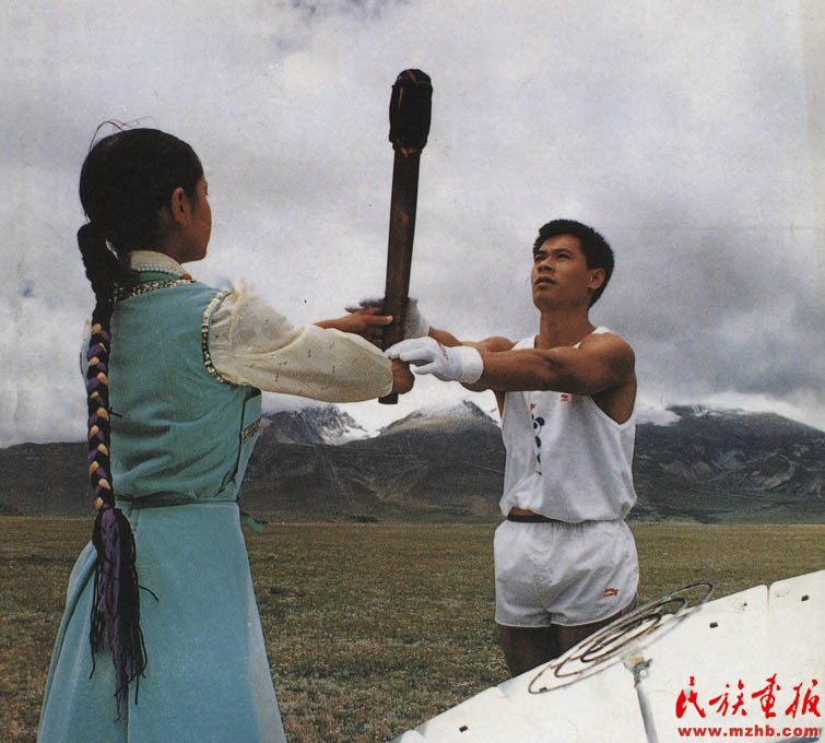 1990年,象征著亞洲30億人民“團(tuán)結(jié)、友誼、進(jìn)步”的第十一屆亞洲運(yùn)動(dòng)會(huì)在中華人民共和國(guó)首都北京隆重開幕。8月7日,在西藏的念青唐古拉峰下,藏族少女達(dá)娃央宗點(diǎn)燃火把,傳遞給前世界冠軍、“體操王子”李寧(壯族),李寧接過圣火,點(diǎn)燃了火種盒內(nèi)的火種《民族畫報(bào)》1990年第11期