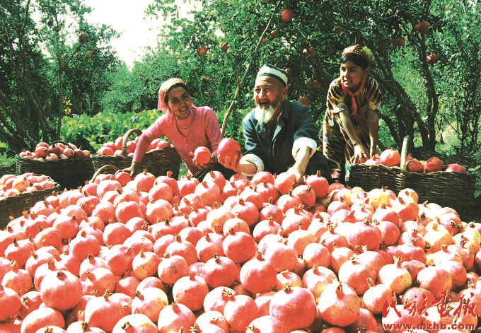 興邊富民行動(dòng)是1999年中央民族工作會(huì)議部署的一項(xiàng)重要的邊境建設(shè)工程,旨在“富民、興邊、強(qiáng)國(guó)、睦鄰”。興邊富民行動(dòng)為新疆的發(fā)展帶來了實(shí)惠,2006年,看著豐收的石榴,維吾爾族農(nóng)民樂開了花?!睹褡瀹媹?bào)》2007年7期