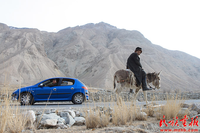 隨著一條條道路越過高山、穿過戈壁、連接綠洲、直抵大漠深處的村莊,汽車和摩托車成了民族地區(qū)各族群眾的主要交通工具,各族農(nóng)牧民的出行條件得到根本改善。2007年,新疆維吾爾自治區(qū)開小轎車的年輕人與騎著毛驢的長(zhǎng)者在路上邂逅。(中國(guó)民族圖片庫(kù)資料)