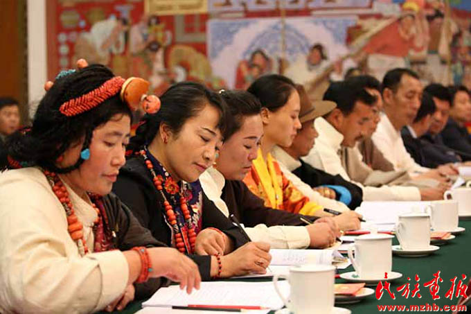 2017年10月18日,在中國(guó)共產(chǎn)黨第十九次全國(guó)代表大會(huì)上,習(xí)近平鄭重宣示:“經(jīng)過長(zhǎng)期努力,中國(guó)特色社會(huì)主義進(jìn)入了新時(shí)代,這是我國(guó)發(fā)展新的歷史方位。”十九大報(bào)告中,習(xí)近平用五句話深刻揭示了新時(shí)代的內(nèi)涵,指出這個(gè)新時(shí)代,是承前啟后、繼往開來、在新的歷史條件下繼續(xù)奪取中國(guó)特色社會(huì)主義偉大勝利的時(shí)代,是決勝全面建成小康社會(huì)、進(jìn)而全面建設(shè)社會(huì)主義現(xiàn)代化強(qiáng)國(guó)的時(shí)代,是全國(guó)各族人民團(tuán)結(jié)奮斗、不斷創(chuàng)造美好生活、逐步實(shí)現(xiàn)全體人民共同富裕的時(shí)代,是全體中華兒女勠力同心、奮力實(shí)現(xiàn)中華民族偉大復(fù)興中國(guó)夢(mèng)的時(shí)代,是我國(guó)日益走近世界舞臺(tái)中央、不斷為人類作出更大貢獻(xiàn)的時(shí)代。圖為席黨的十九大的西藏自治區(qū)代表團(tuán)代表在討論十九大報(bào)告。《民族畫報(bào)》2017年第11期