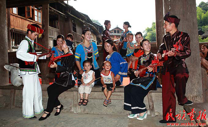 苗族姑娘韋夢迪說:“現(xiàn)在人們生活水平提高了,活動的內(nèi)容也越來越豐富?;顒蝇F(xiàn)場的姑娘若對小伙子有好感,跟過去情況也不一樣了,只要人好就行?!绷侄创迮嗫仆屠先撕喂疰灿幸粯拥母惺埽骸坝浀靡郧靶〉臅r候‘打同年’就是吹蘆笙、跳踩堂舞、對歌,現(xiàn)在‘打同年’活動越來越豐富,還增加了籃球賽、拔河比賽、聯(lián)歡晚會等很多節(jié)目?!泵磕旰倩丶叶家獏⒓印按蛲辍钡膹V西大學(xué)學(xué)生潘金鑫來自融水縣懷寶鎮(zhèn),他說:“通過開展吹蘆笙、踩堂舞、文藝表演等傳統(tǒng)文化活動,加深了大苗山黨群干群之間、村寨各族同胞之間的情誼,增進了民族團結(jié)。我自己也特別能感覺到家鄉(xiāng)的發(fā)展變化,這讓我很自豪。”