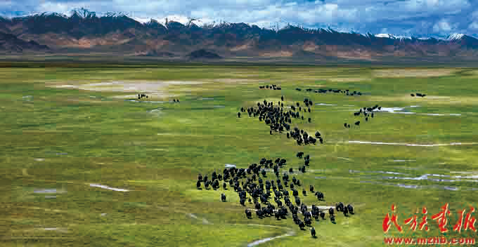 青海擔(dān)負(fù)著保護(hù)三江源、保護(hù)“中華水塔”的重大責(zé)任。為確?!耙唤逅驏|流”,青海各族人民積極投入生態(tài)文明建設(shè),三江源植被逐漸恢復(fù),野生動(dòng)物數(shù)量增加。圖為野牦牛奔跑在高原(民族畫(huà)報(bào)資料)