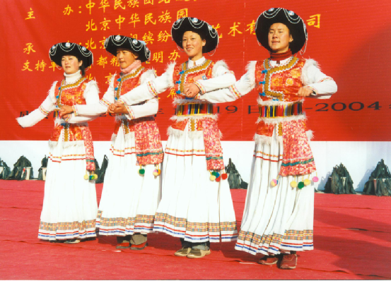 普米族的民歌音樂曲調(diào)主要有呀哈巴拉、阿遼遼、那布升洛等。呀哈巴拉,是一種較古老的民間曲調(diào),旋律悠長委婉、節(jié)奏自由,高區(qū)一般用假聲唱,開頭常用一個(gè)弱起引子作為補(bǔ)充樂句,旋律從低音樂向高音區(qū)行進(jìn),末尾又回到原來的起音上,前后呼應(yīng)。阿遼遼,這種曲調(diào)一般不帶引子,而是以一個(gè)較高的主音作為開頭,一開始就給人以熱情奔放的感覺。阿遼遼一般用以唱情歌、山歌等抒情的民歌。那布升洛,是人們對歌時(shí)常用的曲調(diào),有鮮明的節(jié)奏規(guī)范,由一問一答上下關(guān)聯(lián)的兩句構(gòu)成。在聲樂方面,可以分為民歌(含情歌)、哭腔、禮儀和祭祀四個(gè)部分。其中民歌又可以分為山歌、老年凋、出門凋、獵歌、生活(生產(chǎn))凋、敬老歌、牧歌等;哭腔屬于發(fā)自內(nèi)心的聲音,不受節(jié)奏和音高的約束;禮儀歌則在特定的禮節(jié)和禮儀中才可以吟唱,因此流行面較窄;祭祀歌主要由原始宗教音樂為主要成分,內(nèi)容豐富且風(fēng)格各異,主要有拜龍凋、祭山神等。