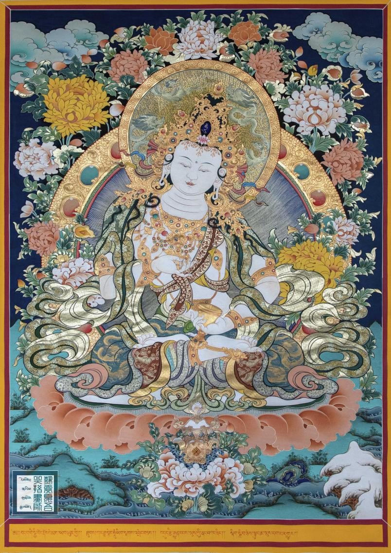 金剛薩埵,梵文Vajrasattva 或Vajrasattva mahāsattva,音譯哇指拉薩特哇摩哈薩特哇,譯名執(zhí)金剛,持金剛,金剛手,金剛手秘密主,金剛薩埵,金剛手菩薩摩訶薩,金剛手薩埵摩訶薩埵等。薩埵者有情之義,勇猛之義,總言勇猛之大士?!饎偹_埵’一語,象征‘堅固不壞之菩提心’與‘煩惱即菩提之妙理’。此名稱于密教中,所指有四::(一)指密教傳法之第二祖。(二)為金剛界曼荼羅中,金剛部院三十七尊之一。(三)為金剛界曼荼羅理趣會中,十七尊中之主尊。(四)為胎藏界曼荼羅金剛部院‘大智金剛部’之主尊。Vajrasattva (梵音之羅馬字轉(zhuǎn)寫形式))由Vajra和Sattva兩個詞組構(gòu)成。Vajra漢文音譯的寫法之一是跋折羅,漢文意譯:金剛。《金剛頂經(jīng)疏一》釋義:“世間金剛有三種義:一不可破壞,二寶中之寶,三戰(zhàn)具中勝”。Sattva漢文音譯薩埵,意為有情,其世間之義泛指一切有情;mahāsattva 意譯為大士,出世間之義是勇猛大士。Vajrasattva漢譯金剛薩埵,是佛教典籍中與普賢菩薩同體異名的圣尊。釋迦牟尼佛曾在經(jīng)典中說有三部佛、五部佛、千部佛乃至無數(shù)諸佛,而其中的主尊就是金剛薩埵,就象一個王國中有國王、大臣、平民等各式人等,但其中最尊貴的是國王一樣,金剛薩埵是“如海諸部壇城主”。禮敬金剛薩埵的咒語為“南無 谷乎 哇指拉 薩特哇耶”,梵文 Namo Guru Vajrasattvāya。意思是:向眾生依祜之主金剛薩埵圣尊致以皈依的敬禮! “南無俱盧跋折啰薩埵耶”是用繁體漢字音譯的梵語。南無:讀音 na-mo,皈命之義;俱盧:讀音 guru,眾生依祜之主、圣尊之義;跋折啰薩埵:讀音 ban-zer-sa-duo,金剛薩埵圣號;耶:讀音 ya,起增上語義之作用。全句譯成現(xiàn)代漢語的意思是:向眾生依祜之主金剛薩埵圣尊致以皈依的敬禮。