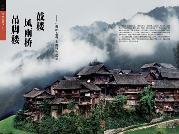 建筑是一部凝固的歷史。“南嶺走廊”上,層巒疊嶂,溪流縱橫,雨水充沛,森林密布。生活在這里的苗族、侗族、瑤族、布依族、壯族等少數(shù)民族,在千百年的勞動(dòng)生產(chǎn)實(shí)踐中根據(jù)當(dāng)?shù)氐牡匦?、氣候、建筑材料、生活?xí)慣等,不斷總結(jié)經(jīng)驗(yàn),創(chuàng)造性地修建了獨(dú)具地方特色的吊腳樓等民居,以及風(fēng)雨橋、鼓樓等公共建筑,這些建筑在展示我國(guó)傳統(tǒng)建筑文化多樣性的同時(shí),也豐富了我國(guó)傳統(tǒng)建筑文化的內(nèi)容,成為不可缺少的組成部分。