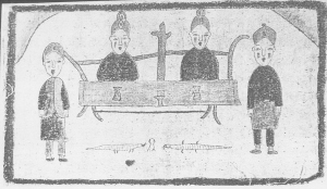 鄂倫春族獵手彪悍、好客,他們專門為我做了餅。這個(gè)餅可不同尋常,面是怎么和的呢?是在馬鞍上弄的,水是冰化成的。面和好后,放在火堆里烤熟,是真正的“燒餅”。用什么煮肉呢?用木頭支起一個(gè)大三腳架,架子頂上吊下來兩股繩,掛著鐵鍋。這種鐵吊鍋有雙耳,裝著木把手,與一般鍋不同的是,它的鍋耳不朝外而是朝內(nèi),木把手在鍋內(nèi)上方,這樣再大的火也燒不著。我想到,在江西曾出土內(nèi)耳陶鍋器,日本也有,可見這類器皿都是用來吊在篝火上燒水煮飯的。