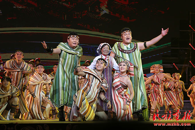 2016年第五屆全國(guó)少數(shù)民族文藝會(huì)演開幕式上,獨(dú)龍族歌舞《邊疆和北京在一起》藝術(shù)地表達(dá)了獨(dú)龍族人的喜悅,引發(fā)了觀眾強(qiáng)烈的共鳴(陳濤 攝影)