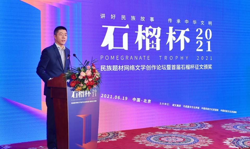 6月19日,民族題材網(wǎng)絡(luò)文學(xué)創(chuàng)作論壇暨首屆石榴杯征文大賽頒獎(jiǎng)典禮在京舉行。作為國(guó)家民委主辦的“中華民族全家?!毕盗谢顒?dòng)之一,首屆石榴杯征文大賽得到了國(guó)家民委文化宣傳司和中國(guó)少數(shù)民族文化藝術(shù)促進(jìn)會(huì)的指導(dǎo)與支持,由閱文集團(tuán)聯(lián)合天成嘉華文化傳媒、中國(guó)民族文化資源庫(kù)、中國(guó)民族文化資源網(wǎng)共同舉辦。本屆大賽以“講好民族故事 ,傳承中華文明”為主題,涌現(xiàn)出眾多弘揚(yáng)民族精神、表達(dá)文化自信、傳播正能量的作品。經(jīng)過(guò)專家推薦及嚴(yán)格評(píng)審,《草原有座蒙古包》、《走西口之天山行》、《彩云微光》等三部作品獲“最具民族風(fēng)采獎(jiǎng)”,《神藏》、《歡想世界》、《爛柯棋緣》、《時(shí)光和你都很美》、《恰似寒光遇驕陽(yáng)》、《黎明醫(yī)生》、《暖君》、《驚雷》、《大訟師》、《消防英雄》等十部作品獲“優(yōu)秀作品獎(jiǎng)”。所有獲獎(jiǎng)作品都將收錄入中國(guó)民族文化資源庫(kù)。中國(guó)作家協(xié)會(huì)副主席、書記處書記吉狄馬加表示,本屆石榴杯大賽是在黨和國(guó)家長(zhǎng)期以來(lái)堅(jiān)持的對(duì)民族文化、少數(shù)民族作家創(chuàng)作和民族題材創(chuàng)作的大力扶持下,依托網(wǎng)絡(luò)文學(xué)平臺(tái),將文學(xué)作品與影視作品改編、游戲、動(dòng)漫產(chǎn)品制作結(jié)合起來(lái),探索的一條發(fā)展民族文化的新路,具有開創(chuàng)意義。