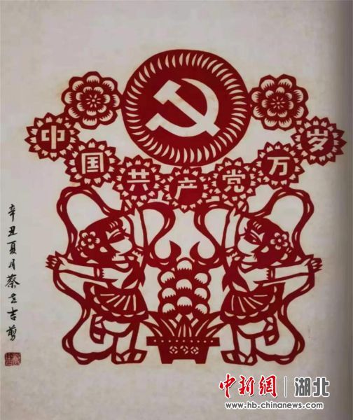 在中國(guó)共產(chǎn)黨成立100周年之際,棗陽(yáng)市非物質(zhì)文化遺產(chǎn)傳承人蔡世吉,以紙、刀、剪等工具,創(chuàng)作出一幅幅精美絕倫的剪紙藝術(shù)作品,謳歌黨的豐功偉績(jī),表達(dá)對(duì)祖國(guó)繁榮富強(qiáng)的美好祝愿。