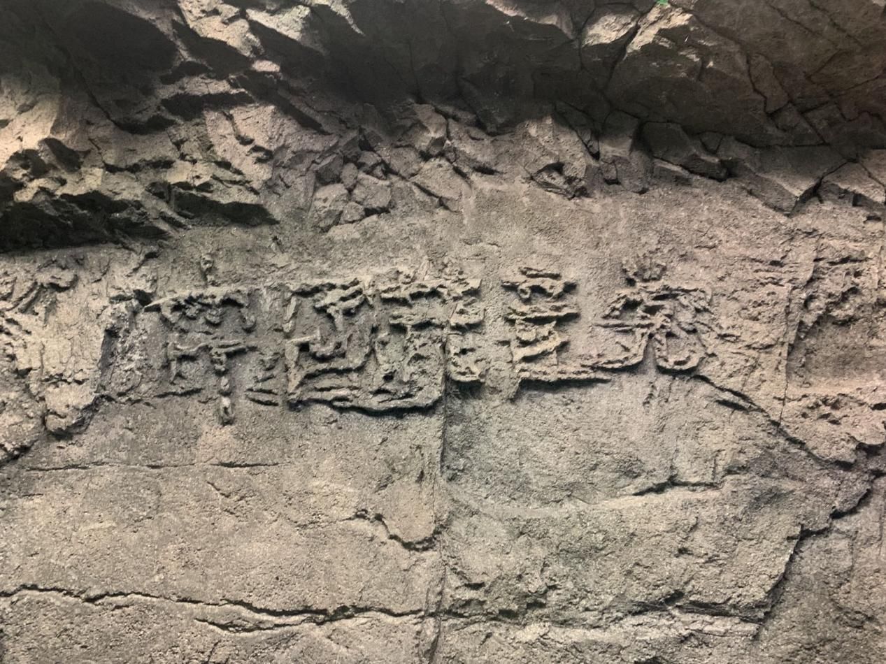 藏字石(場(chǎng)景復(fù)原):位于貴州平塘國(guó)家地質(zhì)公園,山頂墜落的一塊巨石斷面上,凸顯出一排很像“中國(guó)共產(chǎn)黨”這五個(gè)漢字的圖案,這是古生物化石經(jīng)過(guò)溶蝕及差異風(fēng)化作用而形成