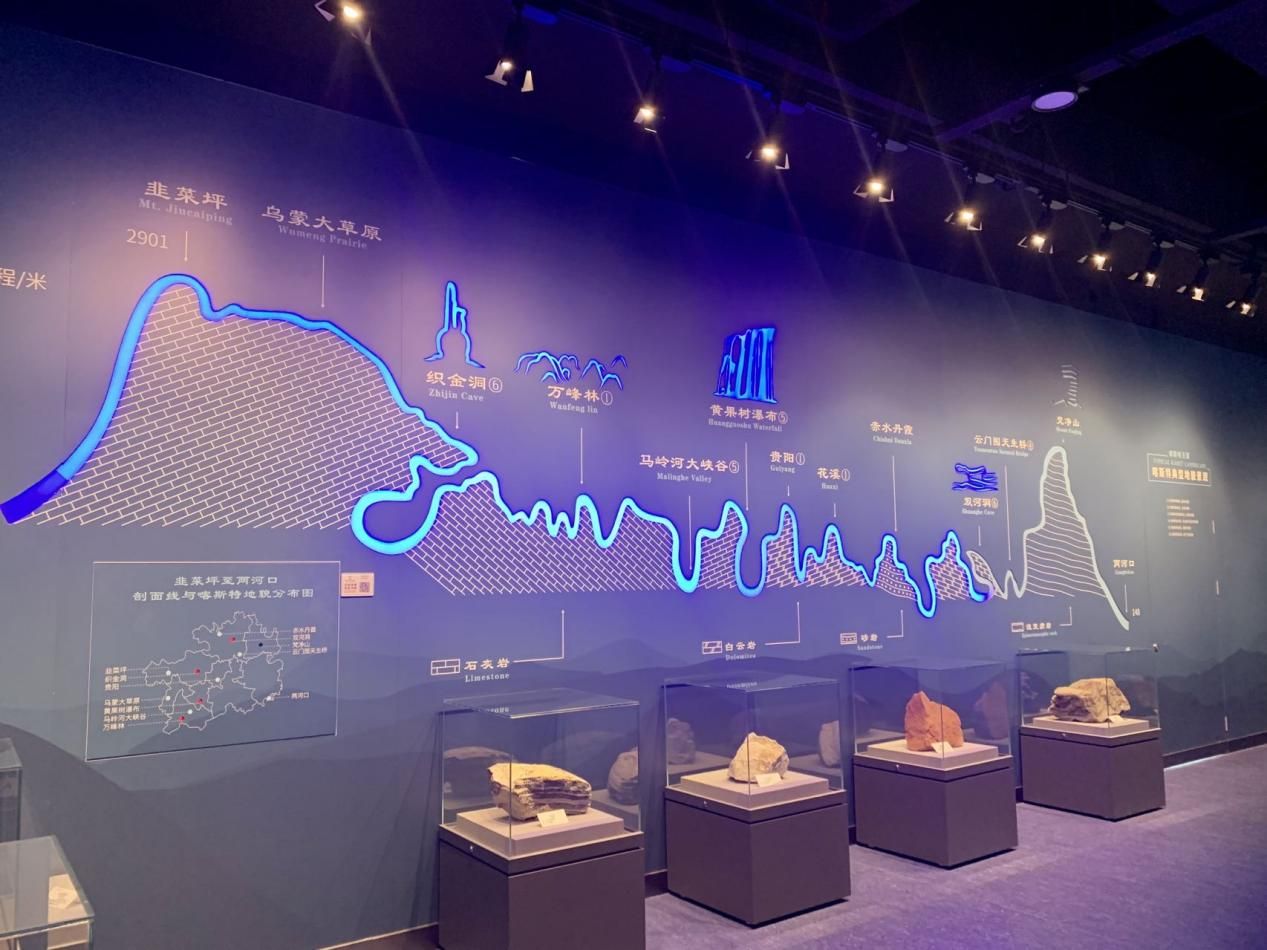 “多彩貴州”展廳以“喀斯特王國(guó)”為主題,分為“滄海變遷”“追根溯源”“經(jīng)典地貌”“地質(zhì)旅游”四個(gè)部分,運(yùn)用聲光電、場(chǎng)景復(fù)原、油畫(huà)、沙盤(pán)等展示手段,再現(xiàn)貴州“喀斯特王國(guó)”的各類(lèi)地質(zhì)景觀,大自然的鬼斧神工。
