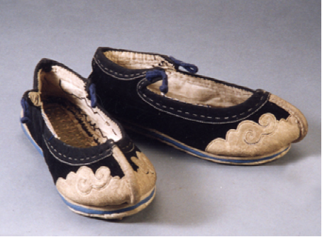 一般來(lái)說(shuō),一套傳統(tǒng)羌族服飾包括長(zhǎng)衫、坎肩、褲子、腰帶、圍腰、裹肚、帽子、鞋子等。一件羊皮坎肩需要兩張羊皮,制作時(shí)將羊皮浸泡在草木灰中發(fā)酵,用木銼子除去腐肉、油污,直至羊皮光滑后再縫制。羊皮坎肩四季均可穿,有“羊皮褂子兩面穿,天晴下雨不離肩”的俗語(yǔ)。坎肩無(wú)領(lǐng)、無(wú)袖、無(wú)扣,四周露出羊毛,晴天毛向內(nèi)穿,雨天毛向外穿,可作墊背,負(fù)重等,也可防寒、避雨;圍腰屬于婦女特有,有半襟和滿襟兩種,多用深藍(lán)色或黑色布料。半襟圍腰略成長(zhǎng)方形,長(zhǎng)約70厘米、寬約60厘米,圖案完全對(duì)稱(chēng)。圍腰上的包袋是重點(diǎn)裝飾部分。滿襟圍腰上窄下寬,呈“凸”字型,一般長(zhǎng)為90厘米、底寬74厘米、胸寬20厘米,袋包多為一個(gè)大包或兩個(gè)相連的小包,位于圍腰中心,圍腰上布滿各種圖案,有團(tuán)花、火盆花、升子印、窗子格、燈籠須。這些復(fù)雜繁多、結(jié)構(gòu)巧妙的羌繡工藝,具有濃厚的羌族特色;羌族有草鞋這種日常鞋子,也有“云云鞋”。云云鞋的鞋尖微翹,貌似小船,鞋底較厚,以各色布包邊,用麻線密納,增強(qiáng)了鞋子的耐磨性。鞋幫繡有各形的彩色云紋,水波或杜鵑花紋式樣,故名“云云鞋”,也稱(chēng)“花鞋”。羌族姑娘常將自己親手制作的花鞋送給小伙子,當(dāng)作定情信物?,F(xiàn)在,羌族人將云云鞋當(dāng)作節(jié)日的盛裝,只有在重大節(jié)日時(shí)才穿。