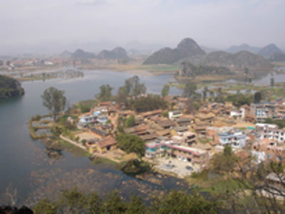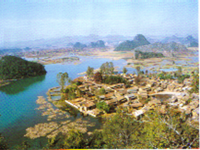 在一次學(xué)術(shù)會議上,筆者請教了首倡并主導(dǎo)“民族文化生態(tài)村”試點建設(shè)的尹紹亭教授,得知在他們首期的五個試點村落建設(shè)中,仙人洞村是比較成功的,于是在本項目的調(diào)查中,仙人洞村成為重點考察的對象之一?!跋扇硕匆妥逦幕鷳B(tài)村”位于云南丘北縣城西北16公里的普者黑湖畔。“普者黑”為當(dāng)?shù)匾妥迦瞿嵴Z,意為“魚蝦多的湖潭”。普者黑實際是由眾多湖泊、河流構(gòu)成,總面積達(dá)165平方公里,已經(jīng)開發(fā)成由5個景區(qū)、56個景點組成的滇東南國家級著名旅游景區(qū)。