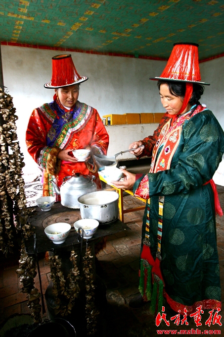 酥油奶茶是裕固族招待貴客的飲料,它們能夠幫助遠(yuǎn)道而來的客人抵御風(fēng)寒