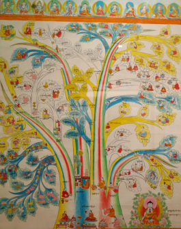 “唐卡”也叫“唐嘎”、“曼湯”,系藏語(yǔ)譯音。唐卡的起源,至今沒(méi)有史料給予精確的記載。據(jù)藏史記,兩千多年前在西藏修建的第一座宮殿——雍布拉宮的墻壁上就繪有壁畫(huà),由此說(shuō)明唐卡的雛形是源于壁畫(huà)。有的學(xué)者認(rèn)為,最早的唐卡是繪制在獸皮上,它起源于牧業(yè)文明的雅礱文化時(shí)期。唐卡可分為兩大類(lèi),一類(lèi)是用絲絹制成的唐卡叫“國(guó)唐”,另一類(lèi)是用顏料繪制的唐卡叫“止唐”。常說(shuō)的80幅醫(yī)學(xué)唐卡即“止唐”中的一種,全稱(chēng)為彩色繪畫(huà)唐卡。彩繪唐卡是依據(jù)《四部醫(yī)典》這部巨著,在公元1730年五世達(dá)賴授意第司·桑結(jié)嘉措組織藏區(qū)著名醫(yī)學(xué)家、繪畫(huà)大師通過(guò)對(duì)尸體解剖、藥材實(shí)物考察,以科學(xué)態(tài)度整理繪制的,又被稱(chēng)為《四部醫(yī)典系列掛圖》,掛圖的繪制使《四部醫(yī)典》這部博大精深的醫(yī)著史書(shū)簡(jiǎn)明易懂。西藏自治區(qū)藏藥廠的陳列室藏這珍貴的歷史資料——醫(yī)學(xué)唐卡,幾百年過(guò)去了,唐卡色彩依然明亮艷麗、工筆細(xì)膩、活靈活現(xiàn),栩栩如生。繪制唐卡的原料全部是用金、銀、珍珠、瑪瑙、珊瑚、松石、孔雀石、朱砂等珍貴的礦物寶石和藏紅花、大黃等天然植物做顏料制作而成,使唐卡有著非常高的純度和穩(wěn)定性。第司·桑結(jié)嘉措完成的唐卡有79幅,加附由第司·桑結(jié)嘉措親筆題詩(shī)加蓋印章的一幅歷代名醫(yī)圖,組成“80幅唐卡”。80幅唐卡,從藥王及藥王城(藏醫(yī)學(xué)基礎(chǔ)理論的建立),人體生理病理、診斷、治療的樹(shù)喻學(xué)說(shuō),病因、癥狀和分類(lèi),藏藥的藥物理論和分類(lèi),防病、診斷和治療、養(yǎng)生方法, 生動(dòng)形象地反映了藏醫(yī)藥學(xué)發(fā)展的進(jìn)程和偉大實(shí)踐。藏醫(yī)彩繪唐卡除了有極高的教學(xué)價(jià)值外,還有很高的民族學(xué)、歷史學(xué)、佛學(xué)及繪畫(huà)學(xué)價(jià)值,是研究藏文化的珍貴資料,其卷幅之多、內(nèi)容之廣博、構(gòu)思之巧妙、畫(huà)工之精湛堪稱(chēng)世界醫(yī)學(xué)掛圖之最,是藏醫(yī)學(xué)對(duì)世界醫(yī)學(xué)的珍貴貢獻(xiàn)。詳細(xì)名目如下:
