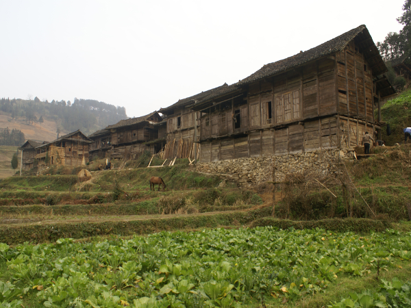 建筑藝術(shù)水族居住區(qū)處于亞熱帶,多雨潮濕,加之樹林茂密,豺狼虎豹野豬經(jīng)常出沒其間。水族居住“干欄”住宅,正可避免地面潮濕和野獸的侵害。“干欄”建筑是水族先民和南方民族智慧的結(jié)晶。水族聚居區(qū)大多是“聚族而居”,同血緣村寨毗連。散居、雜居地區(qū)這種狀況不大明顯。村寨多依山傍水,四周多修竹古樹,寨內(nèi)村腳多魚塘,房頭屋后,地角籬邊喜植果木。房屋多用杉、松建造,用瓦片或杉木皮覆蓋。整棟房屋建筑時(shí)不用一顆鐵釘,但十分牢固。