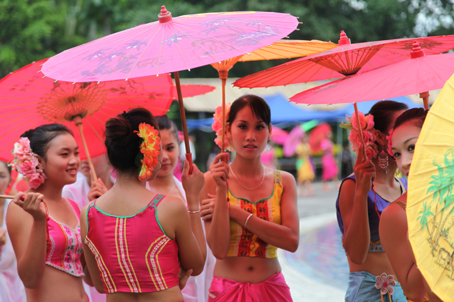 傣族新年。時在傣歷六月二十四到二十六日(夏歷四月中旬),節(jié)期三、五天。節(jié)日清晨,男女老幼沐浴更衣,到佛寺賧佛,即給佛像灑清水洗塵,然后互相潑水,除疾消災(zāi)。后演為以潑水為戲的節(jié)日。相傳,古有火魔無惡不作,搶走7個姑娘。最年輕的姑娘儂香,得知了殺死火魔的秘密:拔下它的頭發(fā)把它勒死。魔頭成一團火球,落在哪里,哪里就起火。姑娘們即挑水相潑,滅了邪火。此傳說相沿成習(xí),漸成潑水節(jié)。一說此俗源于印度,婆羅門教徒每年此時到河中沐浴,洗去罪惡;年邁者不能下河,子女便為其潑水洗罪。后傳入中國傣族地區(qū)。