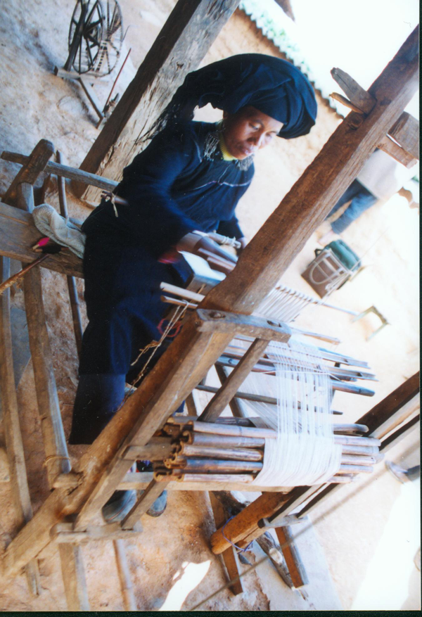 ?。?)紡織。布朗族婦女善于紡織,多在閑暇時間進行。紡織原料有棉花、苧麻和葛線麻等數(shù)種,以紡織棉布為主。這些布用來縫制上衣、筒裙、背帶、布袋、裹腳布等。紡織品種有斜紋布、平布和彩錦。布的質地厚實耐穿,深受本族人喜愛。有的地區(qū),人們多半使用水平織機,紡織技術更進了一步。近十年來,由于價廉物美、品種齊全的化纖紡織品大量銷售,傳統(tǒng)的紡織技術受到了沖擊,一些布朗族婦女已經(jīng)不紡紗織布。