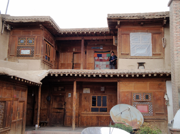 為改善狹小的寨內(nèi)空間,當(dāng)?shù)鼐用窬藿硕幽窘Y(jié)構(gòu)樓房,和青海鄉(xiāng)村民居庭院寬敞的特點(diǎn)形成了反差。寨內(nèi)民居庭院多為四合院式,房屋為土木結(jié)構(gòu)平頂房,一般民居都有飛椽花藻之類。屋內(nèi)一般以木板作隔扇,室內(nèi)有護(hù)炕木板、護(hù)墻木板墻圍,且多雕花草于其上。房屋一般面闊三間,正面以木板隔墻并裝上木板條方格小花窗。佛堂設(shè)在二樓,佛堂所在的房屋一般都是上房,和佛堂不同向的兩邊廂房一般做臥室。院落中央一般都有豎掛經(jīng)幡的旗桿,還設(shè)有桑臺(tái),具有明顯的藏式特點(diǎn)。