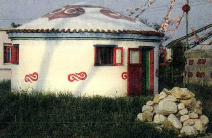 蒙古包自古以來(lái)就是蒙古族居住的帳幕,蒙古包的頂部和邊緣的裝飾以及門(mén)簾都要用貼花的刺繡方法來(lái)裝飾,地下鋪的氈子也會(huì)繡出各種各樣的圖案,使生活中的物品成為了一種富有裝飾性的藝術(shù)品。