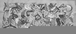 此外,還有一些苗繡圖案反映了歷史事件,比如貴州省博物館在上世紀80年代從一名苗族婦女手中征得一件上世紀50年代做成的苗族女服。令人驚嘆的是,經(jīng)考證,該衣的袖片圖案取材于一段真實的歷史——1855年張秀眉領(lǐng)導(dǎo)苗族農(nóng)民在臺拱起義的歷史事件。