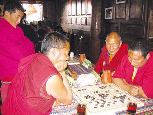 無(wú)論如何,藏棋是流傳下來(lái)了。過去,藏棋一般是在藏族上層貴族間流傳,之后也傳入了周邊尼泊爾、錫金、不丹等國(guó)。據(jù)說(shuō)1958年錫金王子去日本訪問時(shí),曾與日本圍棋高手對(duì)弈一種規(guī)則奇特的圍棋,棋盤也是自帶的,引起了日本棋壇的驚異,而這位錫金王子說(shuō)是學(xué)自西藏僧人。這種奇特的圍棋應(yīng)該就是藏棋。