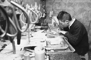 龍?zhí)?yáng)在他的作坊里加工銀飾。