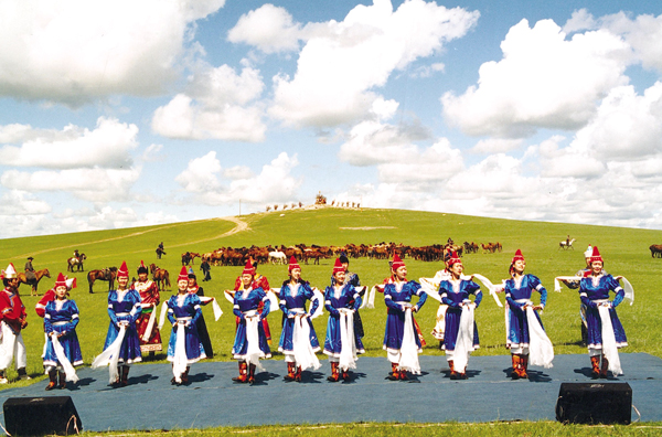 內(nèi)蒙古烏蘭牧騎的演員,吹拉彈唱跳,幾乎個(gè)個(gè)是多面手。從以前騎馬下鄉(xiāng)到現(xiàn)在坐車下鄉(xiāng),方式雖然有變,但為農(nóng)牧民演出的熱情沒有變。鄂溫克自治旗烏蘭牧騎在當(dāng)?shù)貫檗r(nóng)牧民演出都是公益性的,一年最少也有100多場(chǎng)。但自然地,由上級(jí)指派、旅游接待、大型晚會(huì)、出訪演出,則收一些相應(yīng)費(fèi)用。全年下來300多場(chǎng)。他們的演出節(jié)目,一般都有舞蹈、獨(dú)唱、重唱、馬頭琴合奏、民歌聯(lián)唱等,包括《敖包相會(huì)》、《萬(wàn)馬奔騰》等馬頭琴名曲,也有他們自己創(chuàng)作的《山林回想》、《鄂溫克大地》等獲獎(jiǎng)歌舞劇目。
