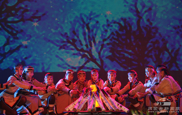 演員們的表演也頗為出色。參演的60多名演員全部來自鄂溫克自治旗烏蘭牧騎,這是一支以年輕人為主的隊(duì)伍,他們?cè)谖枧_(tái)上的精彩表現(xiàn)給這部歷史題材的歌舞劇增添了青春的活力。比如“搶樞”一場(chǎng),不僅形象地再現(xiàn)了鄂溫克民間一項(xiàng)傳統(tǒng)娛樂活動(dòng)——“搶樞”,突顯了年輕人活潑好動(dòng)的特點(diǎn),而且傳達(dá)出鄂溫克年輕人在遷徙途中不畏艱險(xiǎn)、苦中作樂的頑強(qiáng)精神。尤其是在本場(chǎng)最后,小伙子們一段奔放狂野的群舞盡顯陽(yáng)剛之美,展現(xiàn)了鄂溫克民族的豪爽與激情。