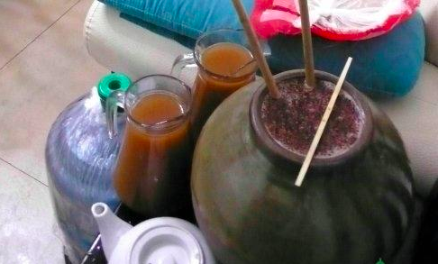 飲用時(shí),將甕口打開,注入開水(冬季用溫開水,夏季用涼開水),然后插入竹管吮吸。竹管以水竹為佳,竹管的長短以甕壇的大小而定,無節(jié)者最佳;如果有節(jié),則事先打通。飲時(shí),在場者沿酒甕圍坐一圈,由年長者最先飲,然后再由左而右,依次輪轉(zhuǎn)。酒汁吸完后可再?zèng)_入涼(溫)開水,直至淡而無味時(shí)為止。咂酒一經(jīng)開壇,剩酒無論濃淡,均不再飲用。
