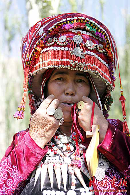 “奧孜庫姆孜”是同時用嘴吹和用手指彈奏的樂器,琴上只有一個小小的鋼片用來彈奏。這種樂器只有柳葉大小。演奏時,琴頭放入嘴里,抵于門齒之間,用食指彈奏鋼片,并同時在口腔內呼吸運氣進行吹奏。在彈奏和呼吸之間奏出婉轉美妙的樂曲,因此被稱為柯爾克孜族的“美妙之口”。