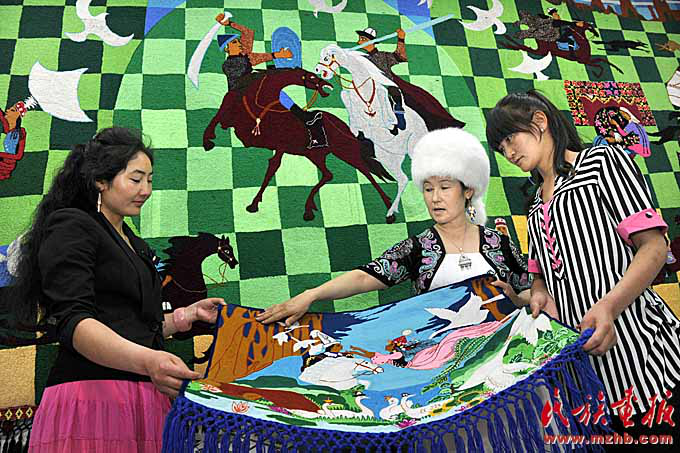 根據《瑪納斯》的內容制作的刺繡作品