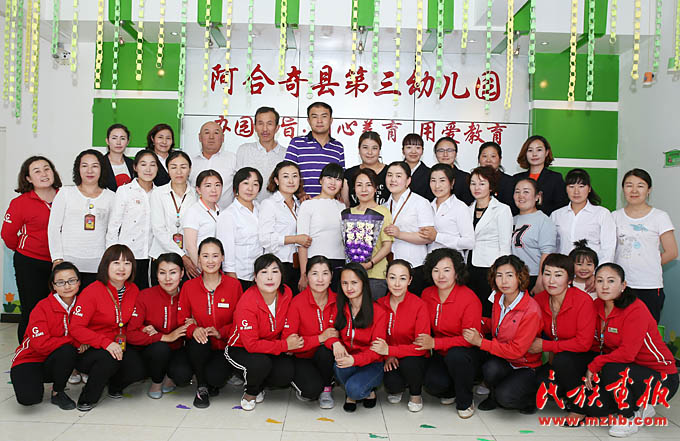 作為園長(zhǎng),她在鼓勵(lì)支持教師成長(zhǎng)的同時(shí),還非常注重自身素質(zhì)的全面提高。從理論水平到實(shí)踐能力,從專業(yè)素養(yǎng)到業(yè)務(wù)技能,從廣博的知識(shí)面到良好的學(xué)習(xí)習(xí)慣和方法,古麗孜娜提不斷充實(shí)和更新,以保持先進(jìn)和超前的意識(shí)。去年,在阿合奇縣教育局的安排之下,古麗孜娜提赴無(wú)錫學(xué)習(xí)帶隊(duì),與全縣13名教師去往美麗江南、援疆對(duì)口城市江蘇省無(wú)錫市進(jìn)行為期一個(gè)月的學(xué)習(xí)。她說(shuō):“通過(guò)這次的學(xué)習(xí),我進(jìn)一步了解和掌握了幼兒園辦學(xué)的先進(jìn)理念和管理模式,也確立了今后的工作目標(biāo)和方向?!彼Uf(shuō),必須堅(jiān)持把學(xué)習(xí)放在第一位,只有扎實(shí)、認(rèn)真地學(xué)習(xí),才能擴(kuò)展知識(shí)領(lǐng)域,更新知識(shí)結(jié)構(gòu),提高分析、解決問(wèn)題的能力,才能提高自己的素養(yǎng)和園所的整體素質(zhì)?!?/p>