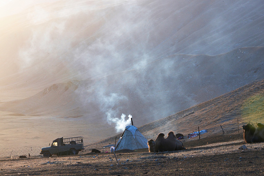 夏季之后,在轉(zhuǎn)往冬前牧場之前,長子達米仁加甫賣了200只當年的羊羔,而后請了他的一位發(fā)小喇嘛來家里誦經(jīng)還愿。整個過程完全是佛事程序,表達的動機有牧收的報償,有被眷顧的感恩,有為一家人的祈福,有為來年的祈愿……這個中間,你很難區(qū)分哪一部分是純宗教的表達,哪一部分是天愿與人意感應,哪一部分受惠于蒙古族數(shù)千年甚至更久的天地神靈,哪一部分為佛光普照……一切都在、都是,又無法確指或截然分割。