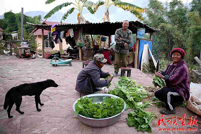 在娜作家記者見(jiàn)到了娜作的老伴兒大巖恩,他邊清理打捆著剛剛采摘下來(lái)的青菜邊說(shuō):“這些小菜城里人特別愛(ài)吃,沒(méi)有上化肥,一點(diǎn)污染沒(méi)有。這筐菜在城里一定能賣個(gè)好價(jià)錢?!?/p>