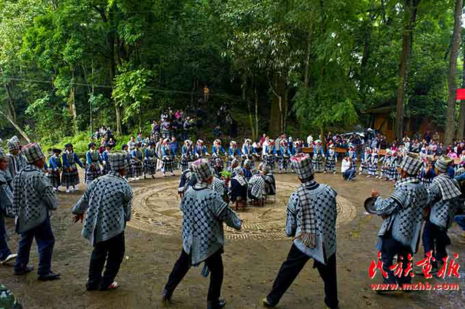 在“寨老”敲響的銅鼓聲里,男人們揮舞著有力的手臂,舞動(dòng)著彪悍的動(dòng)作;姑娘們踏著歡快的鼓點(diǎn),擺手扭腰跳起優(yōu)美的舞蹈;孩子們像林中的小鳥,嘰嘰喳喳地在人群中歡呼雀妖;寨里的老人們坐在場(chǎng)地中央,盡情地享受著包谷美酒和美食。