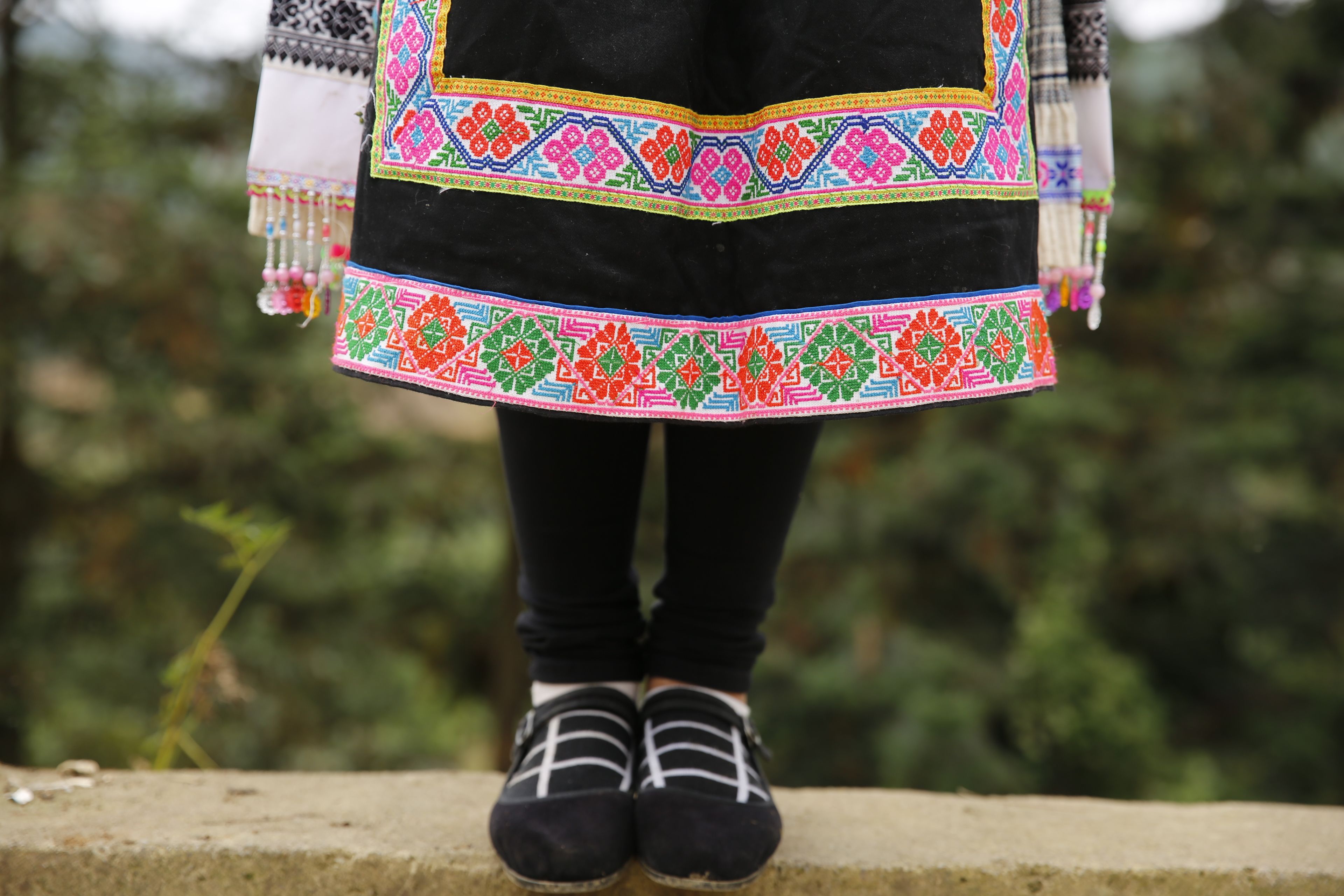 苗族女子服飾花帶百褶裙-裙擺側(cè)面繡花