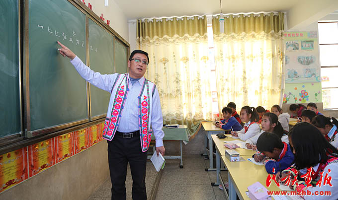 走進(jìn)干凈整潔的教學(xué)樓,陣陣讀書聲漸漸清晰,原來是六年級(jí)的學(xué)生正在上彝語課。看著認(rèn)真授課的彝族老師,校長杞萬開說:“建設(shè)德高業(yè)精的雙語教師團(tuán)隊(duì)是我們做好雙語教育的根本保證,因此我們每年都選派優(yōu)秀教師參加云南省的雙語教師培訓(xùn),提升教師‘彝語為輔,漢語普通話為主’的雙語教育能力。”