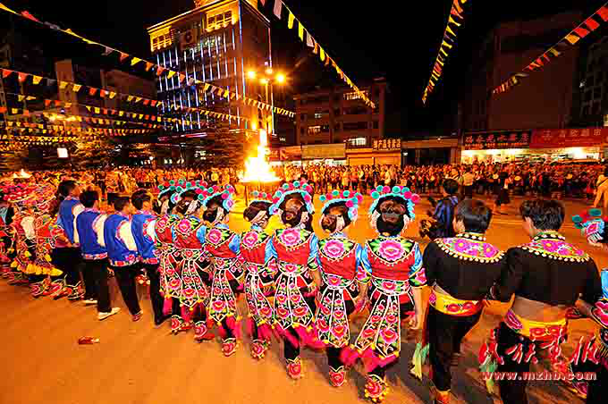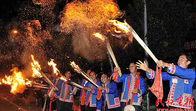 火把節(jié)是彝族傳統(tǒng)節(jié)日中最普遍、最隆重、最富有民族特色的節(jié)日,一般在農(nóng)歷六月二十四至二十六舉行,楚雄彝族火把節(jié)于2006年5月經(jīng)國務(wù)院批準為第一批國家級非物質(zhì)文化遺產(chǎn)保護項目。節(jié)日內(nèi)容集民俗活動、經(jīng)貿(mào)活動、文體活動和社交活動于一體,像磁石一樣吸引著各族群眾,許多人就是通過參加火把節(jié)認識了彝族,知道了楚雄彝族自治州的。節(jié)日期間,各族人民載歌載舞,?;鸢选⒎叛婊?,火把節(jié)成了弘揚彝族文化、促進對外交流、開展經(jīng)貿(mào)活動和各族人民大團結(jié)的盛會。