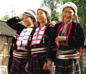 德昂族以藤飾為美,這種習俗從古沿襲至今,集中表現(xiàn)在婦女腰間纏著的幾十圈精致的藤篾腰箍。